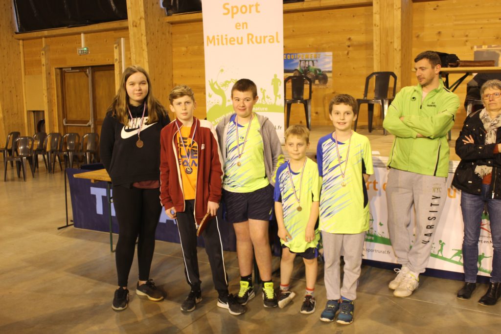 Rappelons que les joueurs de ce challenge sont des jeunes qui ont commencé le ping en septembre dernier ou lors de la saison dernière. Les 8 équipes inscrites ont pu s’affronter durant toute l’après-midi, à la salle de sports de la Maison Familiale Rurale, avec de très beaux échanges, du suspense parfois et devant un public venu nombreux. A la fin de la compétition, Pascal Dubuisson a accueilli le Maire de la commune, M. Hibon et a excusé Mme Defosse, Conseillère Régionale, retenue par ailleurs. Il a proclamé les résultats finaux. Sur le podium, on retrouve Steenbecque 1, suivi de près par Campagne 1 et enfin Steenbecque 2. Viennent ensuite, Campagne 2, Coulomby 1, Coupelle-Neuve 1, Coulomby 2 et Campagne 3. Enfin, moment très important de l’après-midi, Pascal a mis à l’honneur le responsable du tennis de table de Campagne-les-Boulonnais, Jérôme Findinier, pour son engagement bénévole. Jérôme a mis en route le club en 2014 en l’affiliant à la FNSMR, des participations à quelques journées de challenges suffisaient. Puis l’effectif s’est vite étoffé pour arriver à plus d’une trentaine de pongistes aujourd’hui. Pour satisfaire les uns et les autres, il a ensuite inscrit des équipes en UFOLEP et depuis septembre, il a aussi inscrit une équipe en FFTT. Son club celui que tout dirigeant souhaite avoir : des adultes, normal, mais aussi des féminines, des jeunes et des vétérans, c’est ce qu’on appelle le « sport pour tous ». Laurence Duchatel, l’ancienne présidente de « Sports et Loisirs » et M. Hibon, ont tour à tour, salué l’investissement personnel de Jérôme pour l’animation sportive de son village.