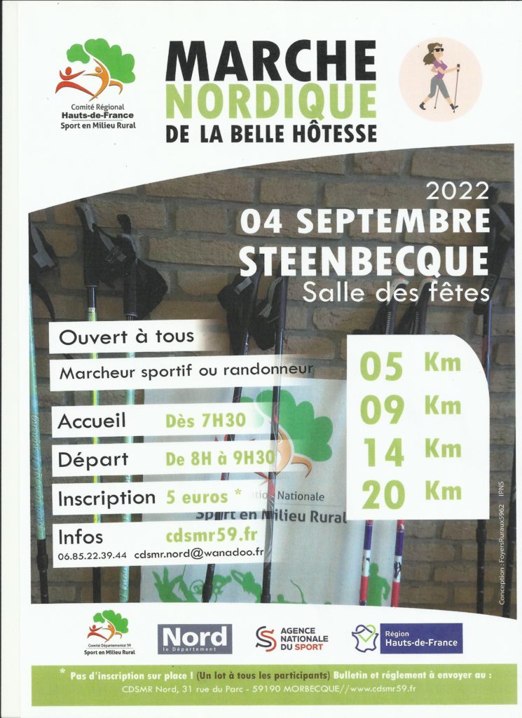 La Marche Nordique de la Belle Hôtesse est un évènement ouvert à tous, non chronométré et sans classement. L’épreuve se déroule en individuel à allure libre,avec 4 parcours proposés : 5 , 9 , 14 et 20 km. Chaque participant aura une petite bouteille d’eau et une compote dès le départ et un lot lui sera remis.